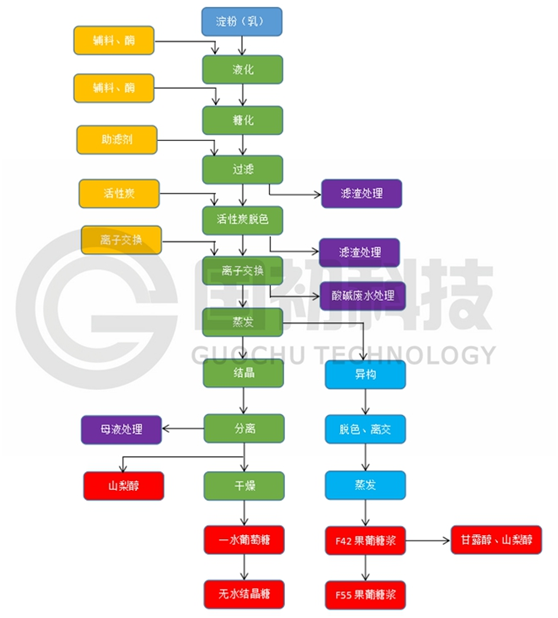 &nb✔sp; γ 圖1 葡萄糖以及衍生(shēng)產品工(gōng)藝流程簡圖