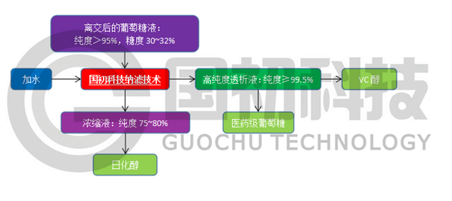 此工(gōng)藝路(lù)線是(shì)經過驗證,并結同類糖分(fēn)離純化(huà)項目成熟的(↑de)工(gōng)業實際應用(yòng)情況進行(xíng)的(de)設計,進料為離交脫灰液,一(y∑ī)般純度>95%,糖度30-32%;經過國初科(kē)技(jì)納濾技(jì)術分(fēn)離後,得(de)到(dào)的(de)高(©gāo)純度透析液,純度≥99.5%,用(yòng)于生(shēng)產VC級山(shān)梨醇或得(de)到(dào)醫藥級葡萄糖液;而膜的(de)濃縮液,葡萄糖純度相(xiàng)對低( dī),純度75-80%,用(yòng)于生(shēng)產日(rì)化(huà)醇。