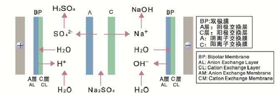 Bipolar membrane is a kind of ion exchange membrane with special functions. Hydrolysis happens πand produces H
