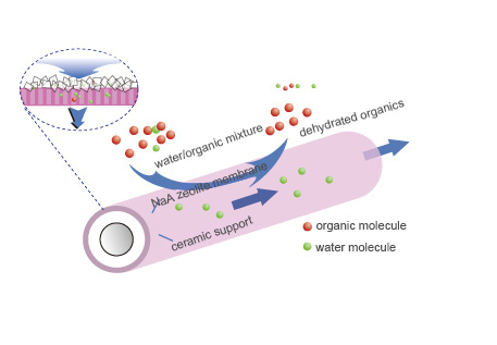 Pervaporation is a new type of membrane separation technology. In the  separation process, component partial pressure difference is the driving force, and the selec₽tive separation of components is achieved by the diff♠erence of adsorption diffusion rate and molecular size of each component in perva↑poration membrane material. Organic solvent gas phase (or liquid phase) feed is introduced onλ the side of pervaporation membrane, while the other side uses vacu'um suction to remove the water in the solvent in time, thereby λobtaining anhydrous organic solvent.