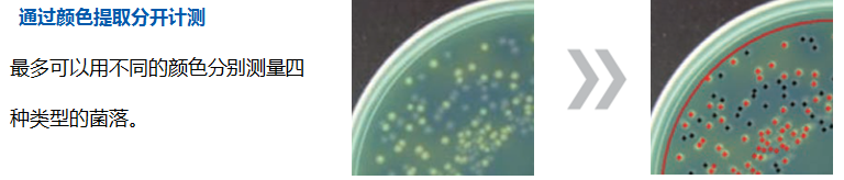 原理(lǐ):在自(zì)動測量時(shí),可(kě)以從(cóng)測量對(duì)象中自(zì)動排除大(dà)的(de)菌落。可(kě)測量的(de)區(qū)域可(kě)自(zì)動計(j<ì)算(suàn),并可(kě)實現(xiàn)精确的(de)CFU轉換。