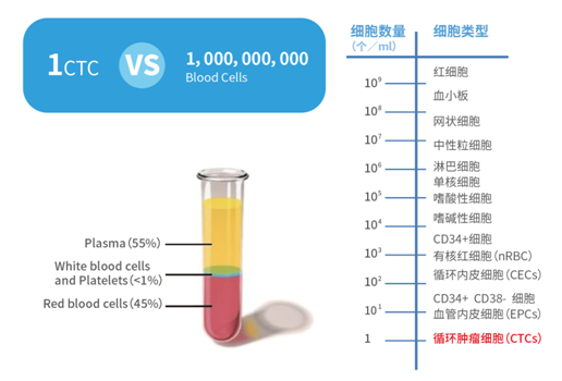循環腫瘤細胞(CTC)自(zì)1869年(nián)被首次提出,但(dàn)曆經150年(nián)仍無法被廣泛應用(yòngδ)于臨床。因為(wèi)在1ml血液中,大(dà)約有(yǒu)5,000,000,000個(gè)血細胞,而循環腫瘤細胞(CTC)的(de)含量往往隻有(yǒu)1~50個(gè)。