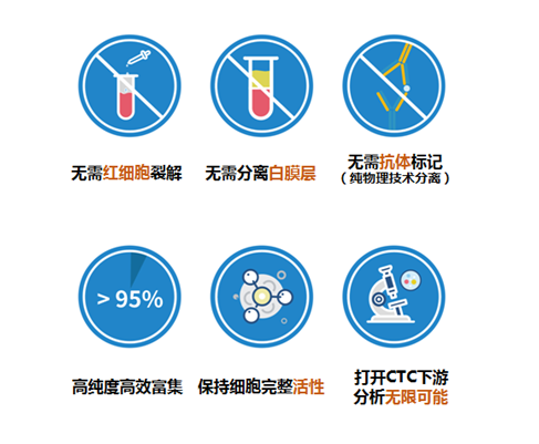 無标記、無損富集:無需抗體(tǐ)标記,純物(wù)理(lǐ)技(jì)術(shù)實現(xiàn)循環腫瘤細胞(CTC)分(fēn)離(lí)富集,保持細胞完整活性