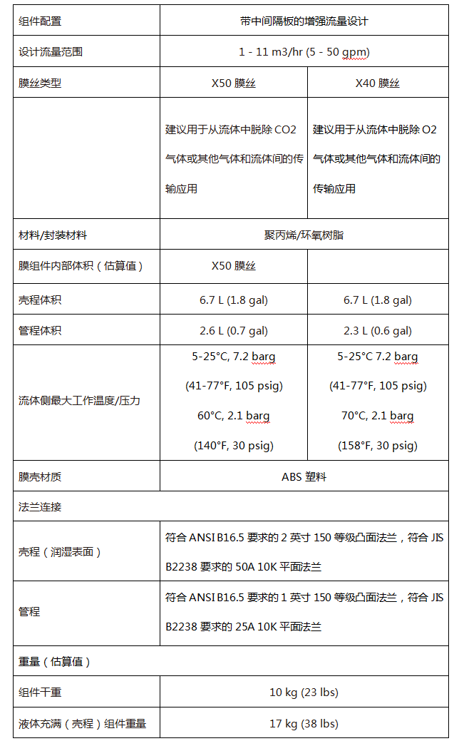3M™ Liqui-Cel™ EXF-6x28系列膜接觸器(qì)産品參數(shù)表