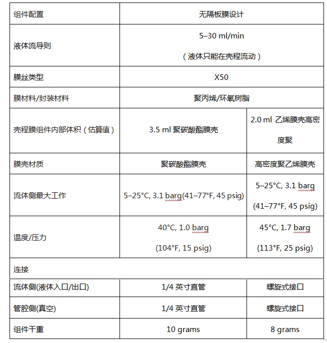 3M™ Liqui-Cel™ MM-0.5x1系列膜接觸器(qì)産品參數(shù)表