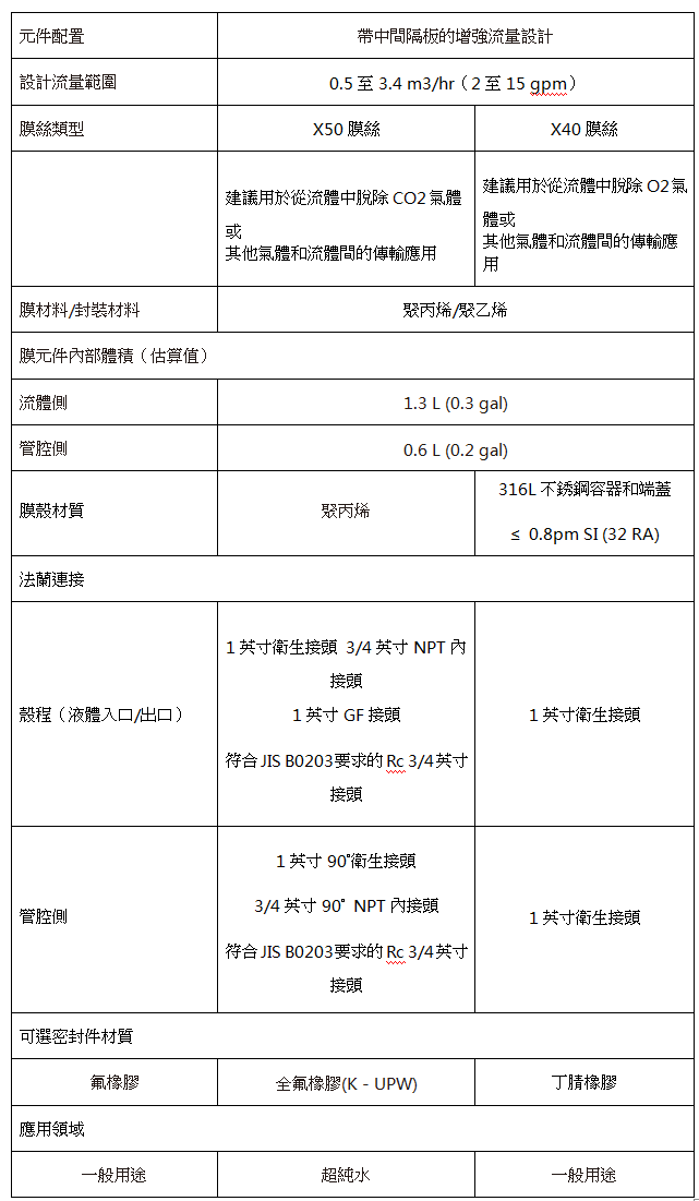 3M Liqui-Cel EXF-4×13系列膜接觸器(qì)產品參數表