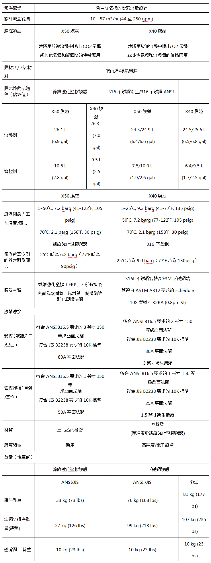 3M™ Liqui-Cel™ EXF-10x28系列膜接觸器(qì)產品參數表