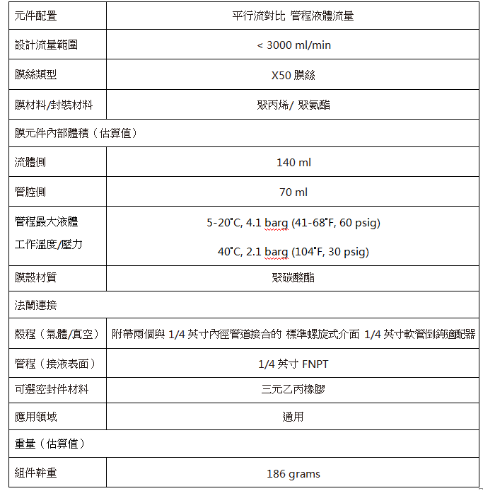 3M Liqui-Cel MM-1.7x8.75系列膜接觸器(qì)產品參數表