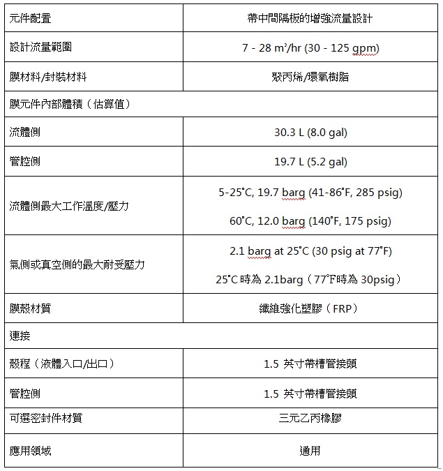 3M Liqui-Cel EXF-8x80系列膜接觸器(qì)產品參數表