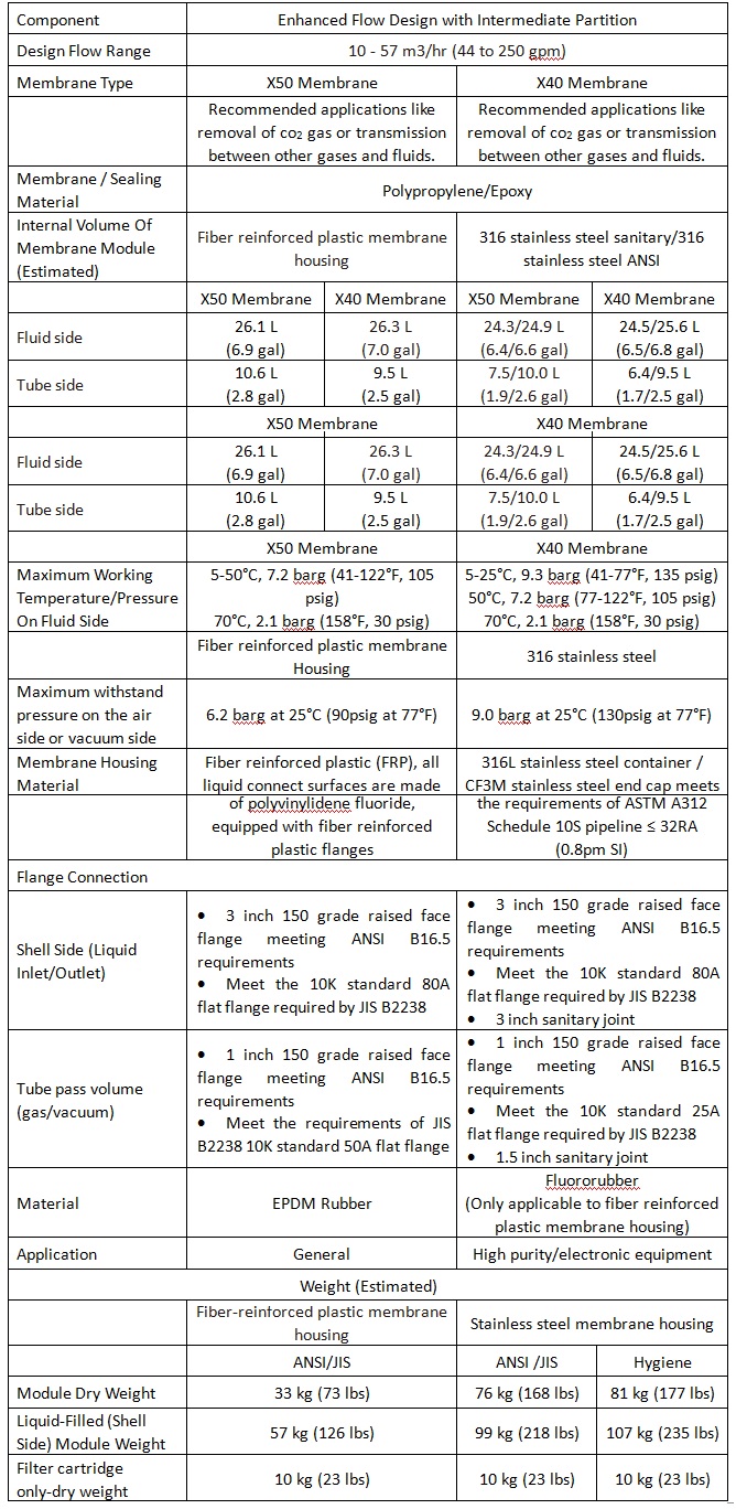 3M™ Liqui-Cel™ EXF-10x28 Series Membrane Contactor Product Parameters