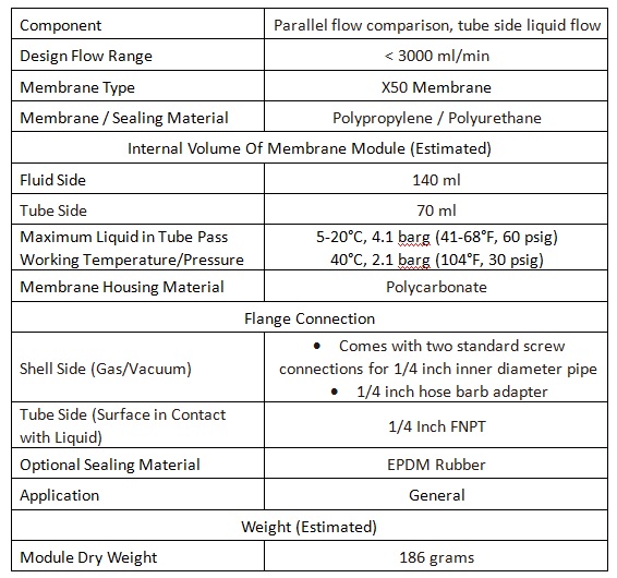 3M™ Liqui-Cel™ MM-1.7x8.75 Series Membrane Contactor Parameters