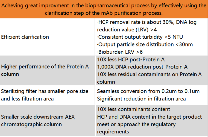The positive charge of the Q-functional nonwoven mediaα bonded to Emphaze™ AEX Hybrid Purifer can significantly reduce the negat​ively charged HCP. The HCP removal rate of harvest and centrifugate can usually reach 20-4§0%.