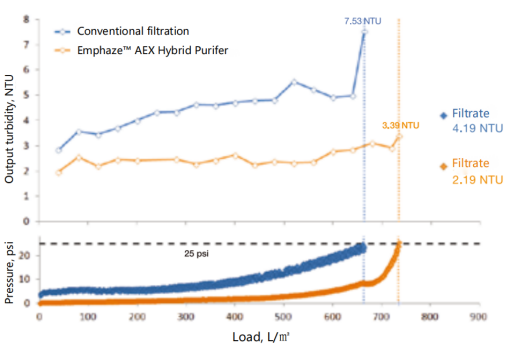 Based on the Emphaze™ AEX Hybrid Purifer products have strong anion exchange abil≠ity and mixing mechanism of 0.2μm membrane at the terminal, so its turbid♥ity reduction ability is better than that of the conventional; depth filtratio←n. During the whole purification process, the turbidity of the filtrate is generally <5NTU.