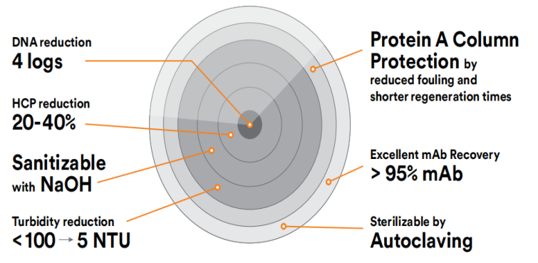 Emphaze™ AEX Hybrid Purifer, combined with Z≈eta Plus™ Series Depth Filter and LifeASSURE&tradeβ; membrane as a matching filtration solution, can greatly improve the process≤ and make it possible to operate without centrifugation.