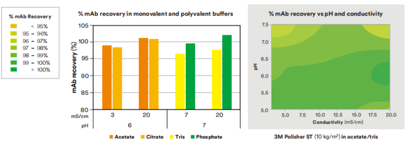 Without significant adjustments to pH and conductivity, Polisher ST has robust perfπormance with respect to HCP and DNA clearance and better mAb recover£y.